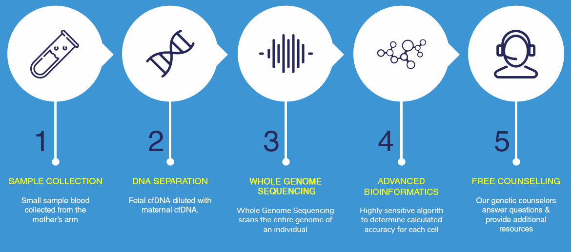 It can be administered early into the pregnancy, at 9 weeks – earlier than any other prenatal test, which empowers the parents to make informed decisions about the future of their baby.